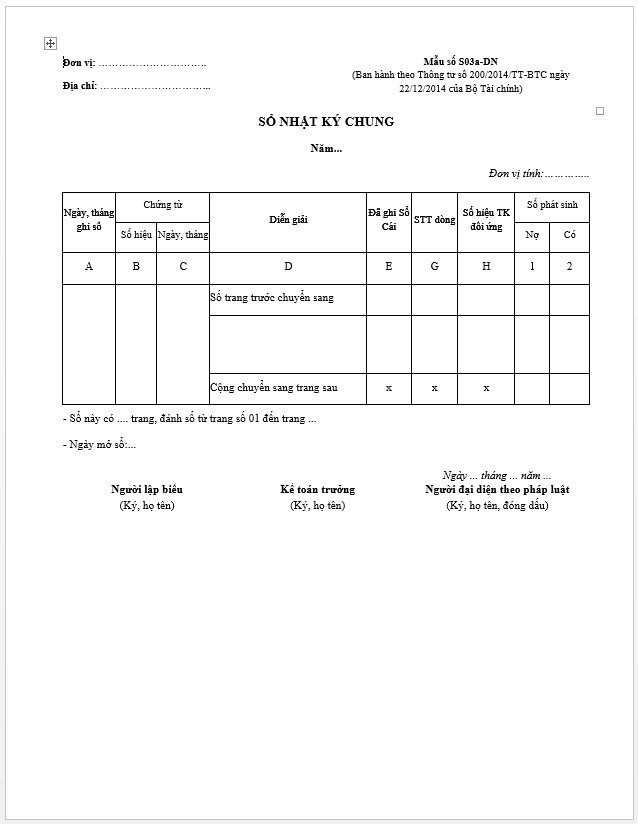 Mẫu sổ nhật ký chung và cách lập theo Thông tư 200/2014/TT-BTC