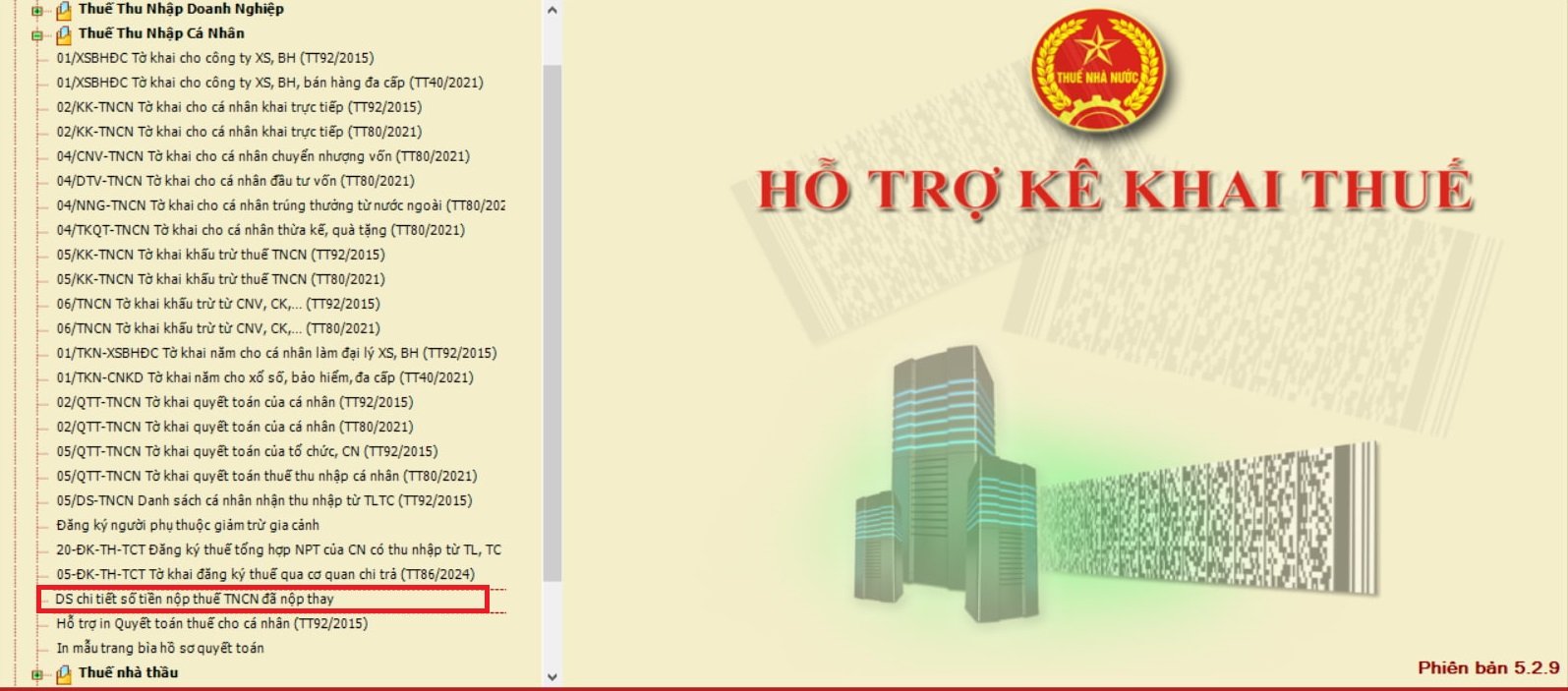 Bước 1: Chọn danh sách chi tiết số tiền nộp thuế TNCN đã nộp thay